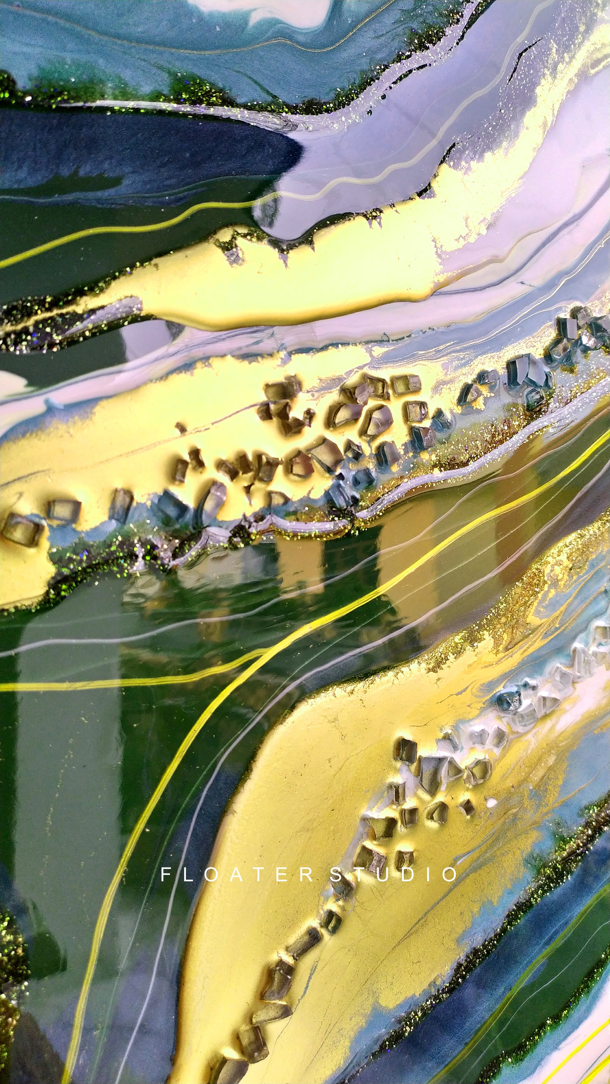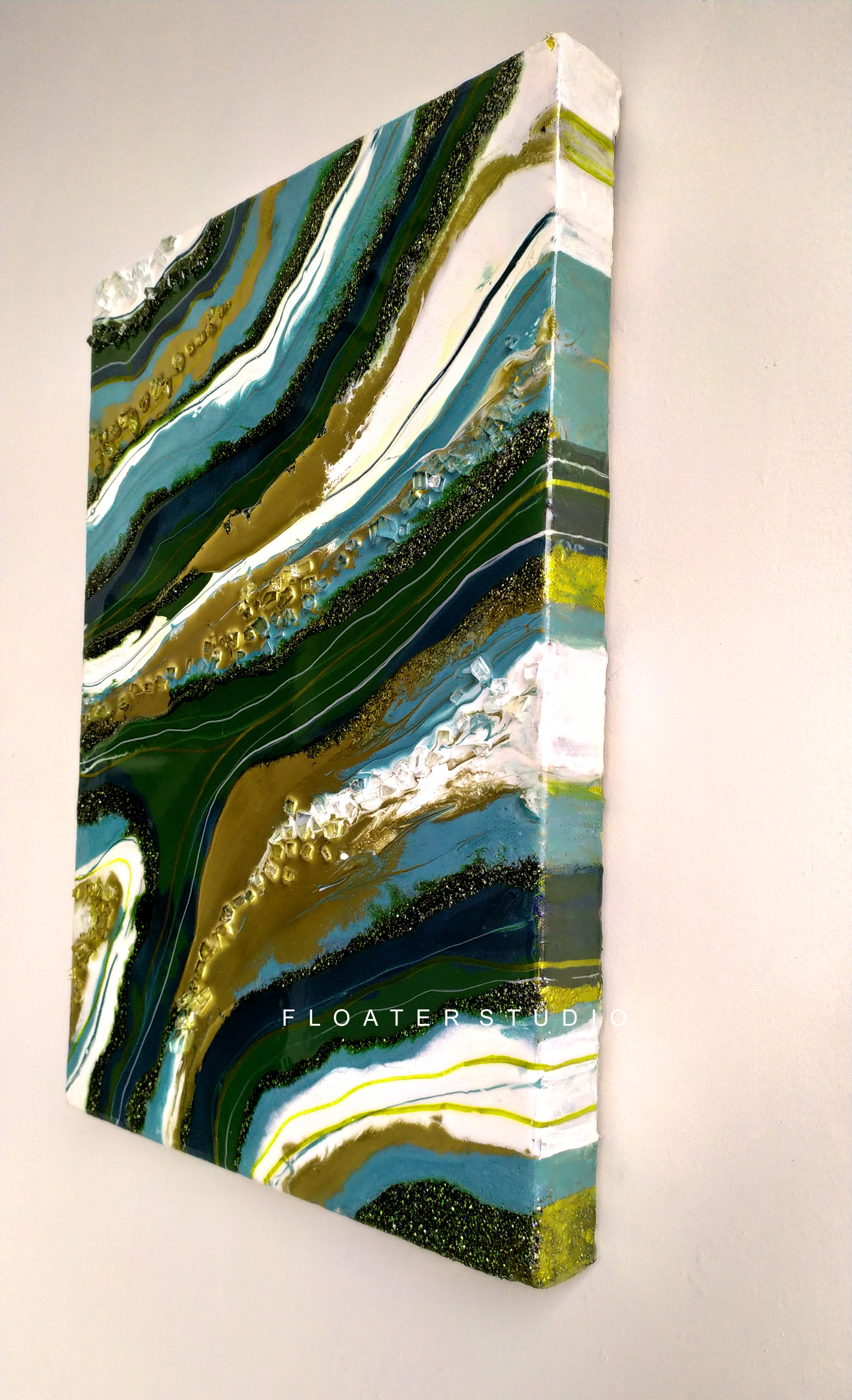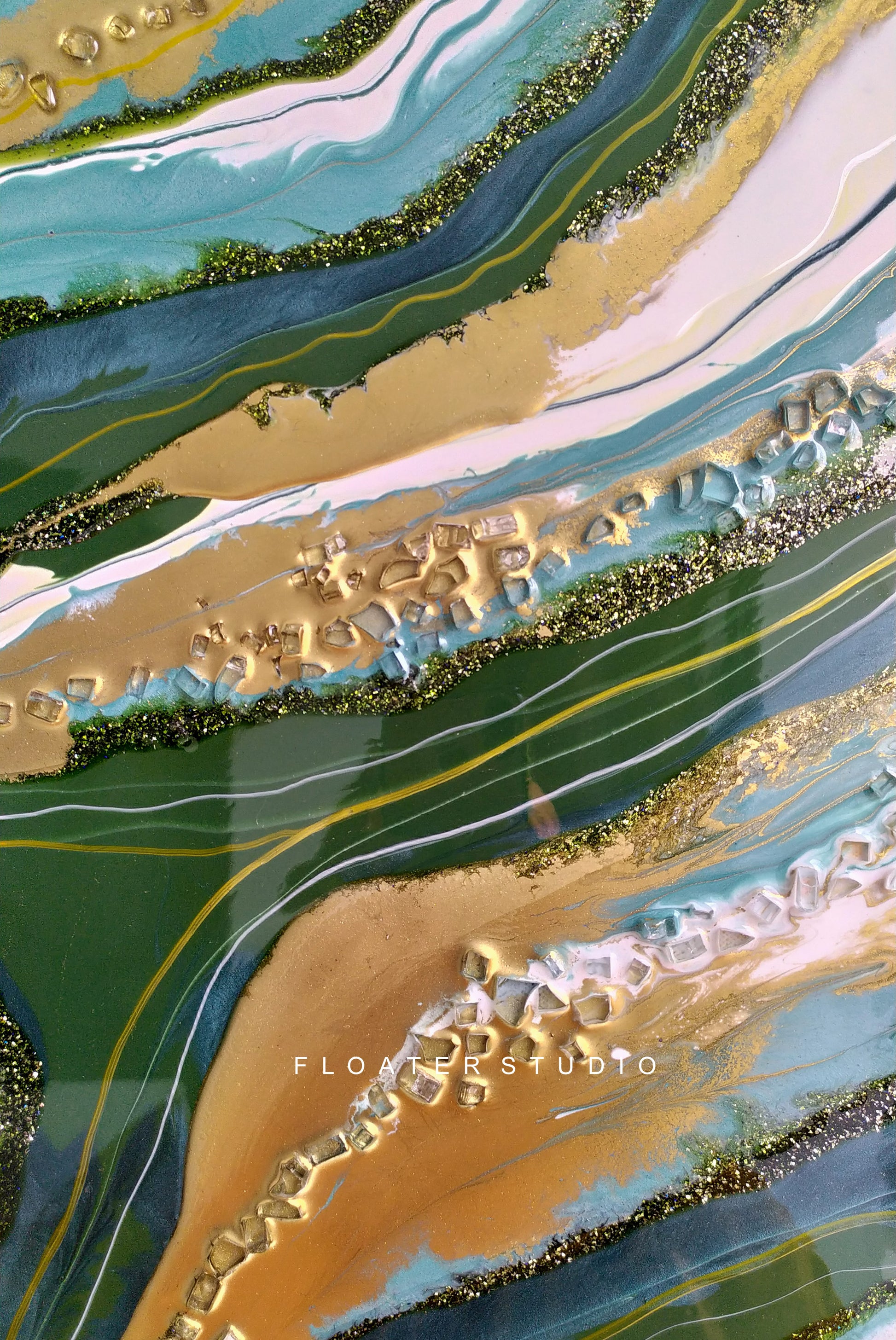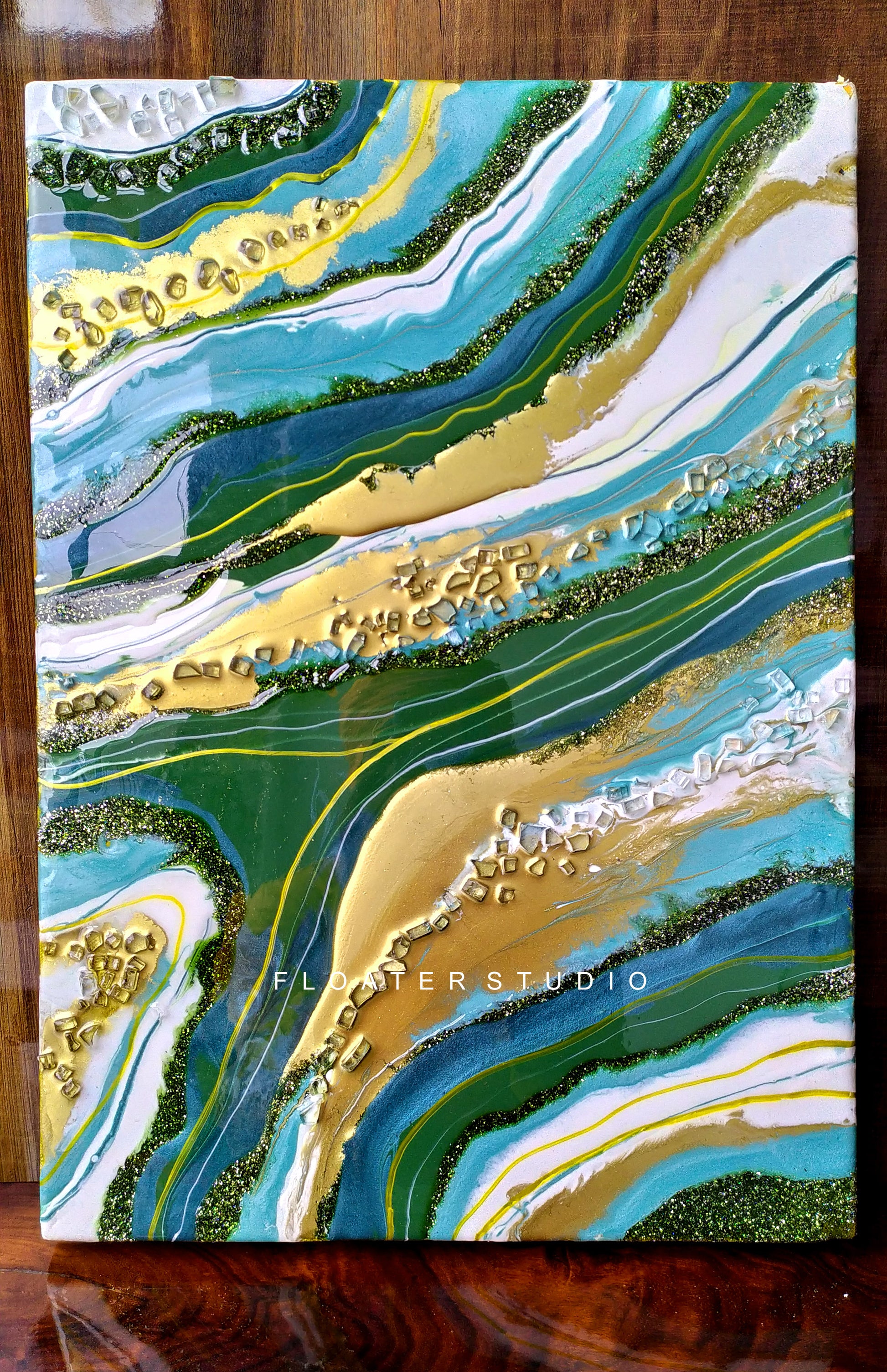 Resin wall Art, Resin Geode Painting for Home Décor, Green, Golden or White Color Panel (Customization Available)